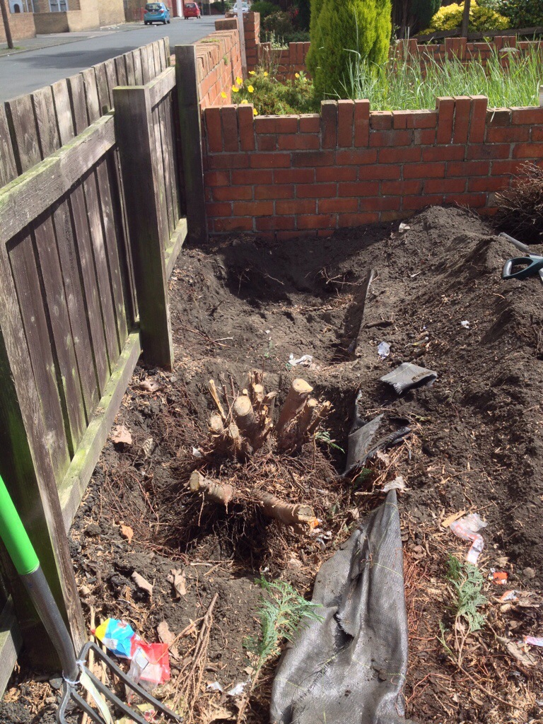 Today saw me agree to help out my brother in his garden, now since it seems illegal to own anything nice and new in this town (jealousy is a bugger) we decided that it would be more beneficial to make him a drive way in his garden (why do I agree to theses stupid ideas) “I’ve got three bushes to move”, he said, frikkin TREES MORE LIKE. Getting there fashionably late, he had already started ( I love civvies (I know I am one now)) his tool box consisted of a saw and a spade! Really! So I sent him for a digging fork, cutters, and eventually another spade after I broke his first one. Two cups of coffee and some soul searching later (I’ve dug many shell scrapes in my time) the deed was done, I was knackered and there was a strong possibility that I had accrued a “squaddie” tan!!
