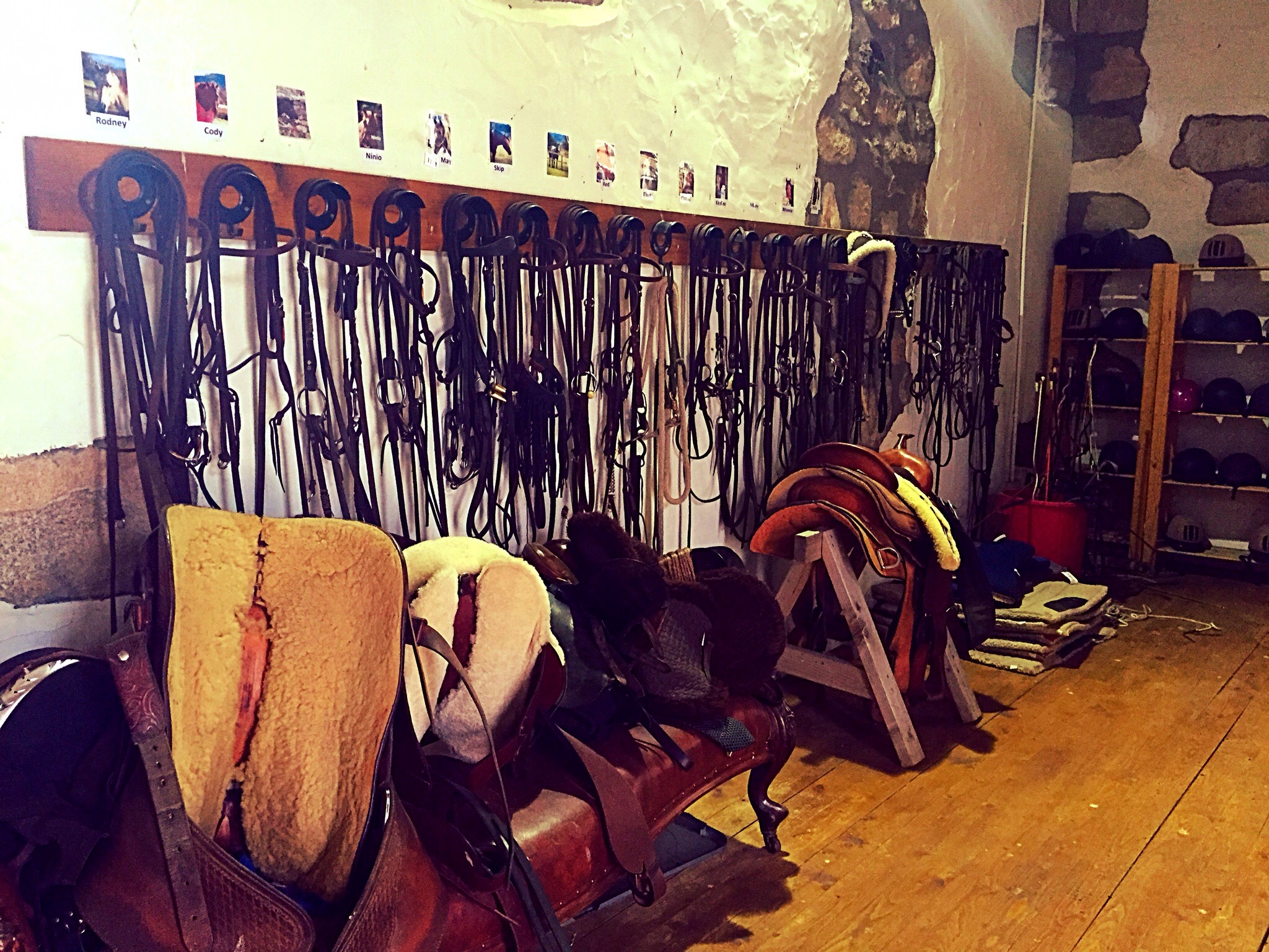My first session with an orse in years! But this time I was learning to brush her and make her feel at ease with me! Or more to the point, me feel at ease with her. A “Blue, (something or other)”called “Ellie May”. She stood about a foot taller than me and seemed to be stoned out f her tree. Or placid, or tired I don’t know but she was dormant! (I liked her) now brushing orses may seem a bit tame if you look at what people do with them, but I must admit, it was a joy just to be so close to an animal that could eat me in three bites. A cup of tea later and we were shepherded into an indoor arena. Leading your orse was our task. Staying in front of them and having them follow you us easy right! Is it fuck! First you have to put on its harness thing! Not a bridle as we are doing it the American cowboy style. Everyone practiced on a wooden orse (ready for doing it for real in the morning) but no, I had to do it with Ms May as she wasn’t ready for me. How she stood still as I fumbled with her head trying to get it into this noose I’ll never understand but stand still she did. Leading them out the paddock into the outdoor arena I thought I was going to get stamped on. (Apparently they test your resolve first). I thought I was doing alright until I was reminded I was in charge, (well supposed to be)