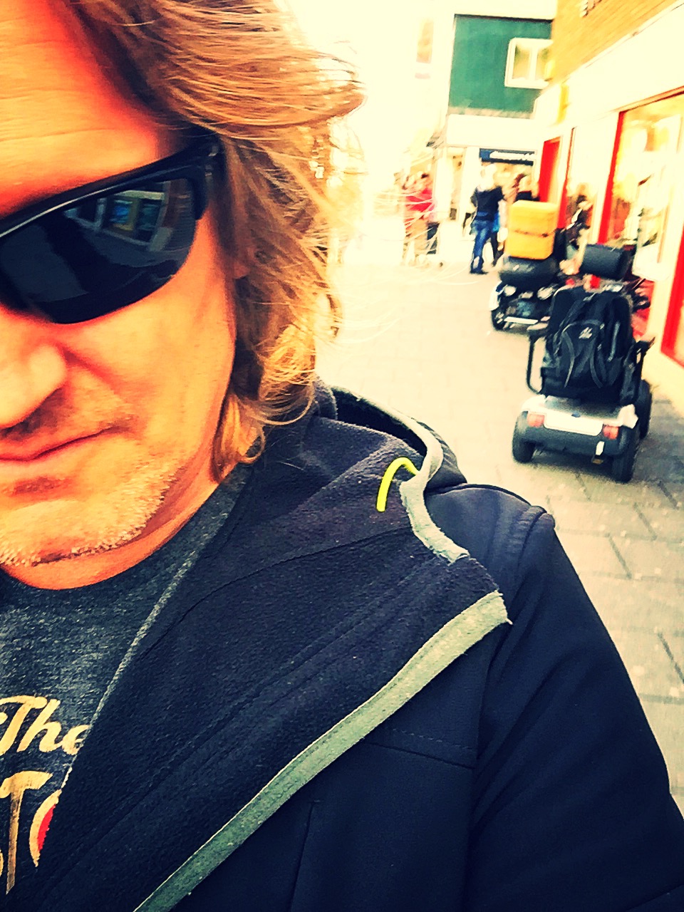 Cars with blue badges, yellow lines ignored. Traffic enforcers ignoring the lawbreakers and turning a blind eye. Why? To much hassle? Scared of the consequences, not enough ‘Bovvered’? I just don’t know! Law enforcers on all counts ignorant of the law. All walks of life’s uniforms abound the litter strewn streets of my home town with the transport of the infirm! It seems the worlds supply of electric chairs are available on every street corner here, parked everywhere they can get to. Forget the blue badges, forget the roads, these decrepit despotic dunderheads roam the paths like packs of ravenous hyenas, belching smoke from the chimneys of the nose. Being gassed by the bottles of oxygen in their bags. Not long for life!