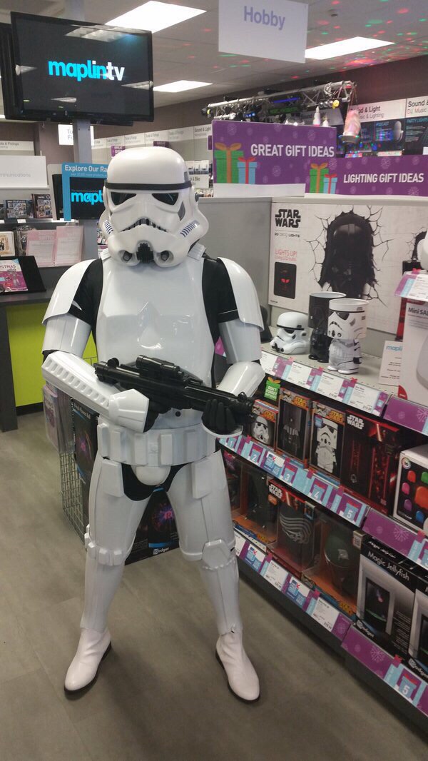 An early Christmas present for meself! It’s the second one that’s been posted out (Bugger knows where the first one is, but if it comes it will find itself in an auction). Anyway, Bob the stormtrooper had been modded to super stunt mode, so now I can walk around without me arm or leg dropping off. Just his helmet to pad out and it’s all sorted…….again. Forgive me for putting this pic on here, but I found it on the website for Maplins in Cramlington.