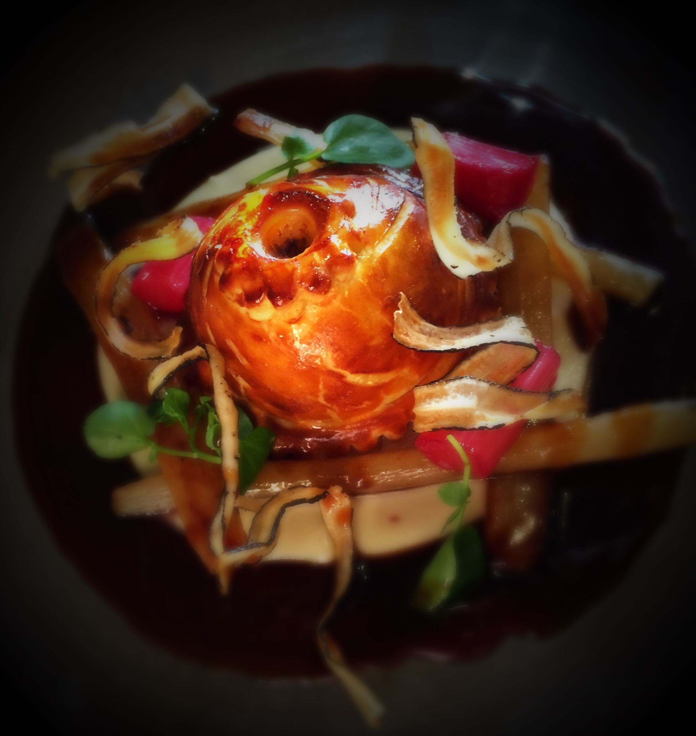 By the time the pudding course had materialised! I had troffed my way through a plate of Doe Deer! (Yup you read that right) bambis mum ended up on me plate under a blanket of pastry! (The red wine sauce knocked spots off anything I’ve made (and I usually get pissed on that)) then the pudding! Bugger me! I’ve eaten some gorgeous custard puddings before,but this knocked the socks off anything by anyone else (even me mam) I’ve never tasted rhubarb jelly that was so tart it turned my eyes inside out! And yet the wine kept coming!