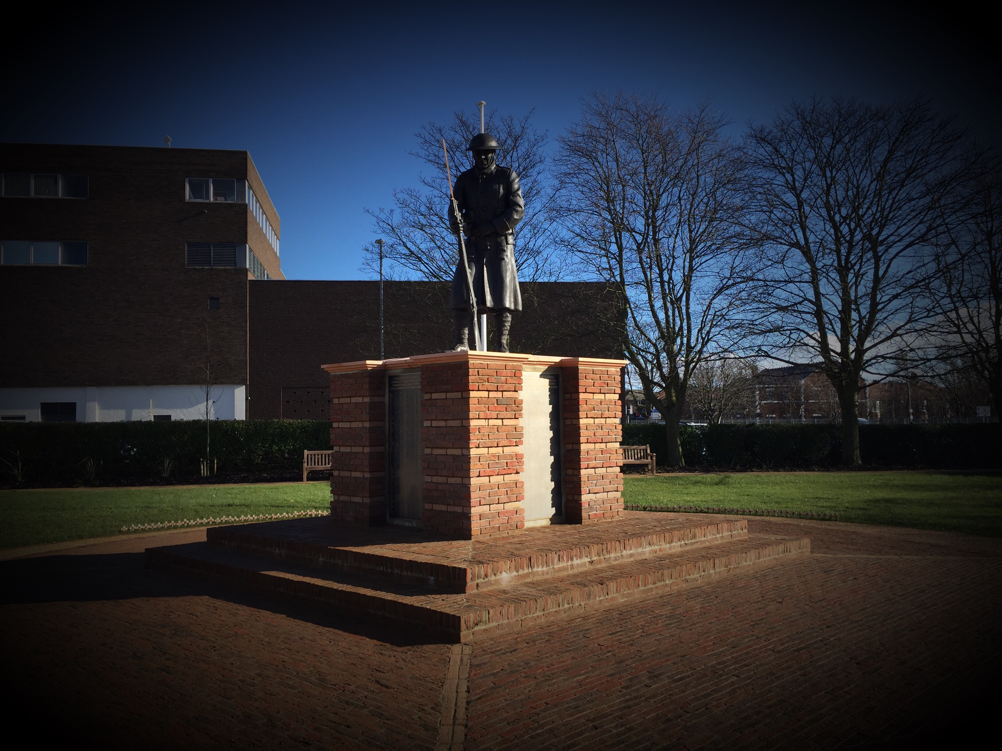 I ended up (so far so good) at a post office with an envelope so I sent that! Mission accomplished (I think! I don’t know. My morning was pretty fucked up) as I wondered around (little lost soul) I stumbled onto the Ashington garden of remeberence! Now whoever planned this and bribed the money together to build this thing, I applaud them. It’s a beautiful peaceful place. Well kept (apart from a few patches, but I think they are a work in progress) the statue has been there for ages but it’s been given a new home on the plinth in the middle of the garden.