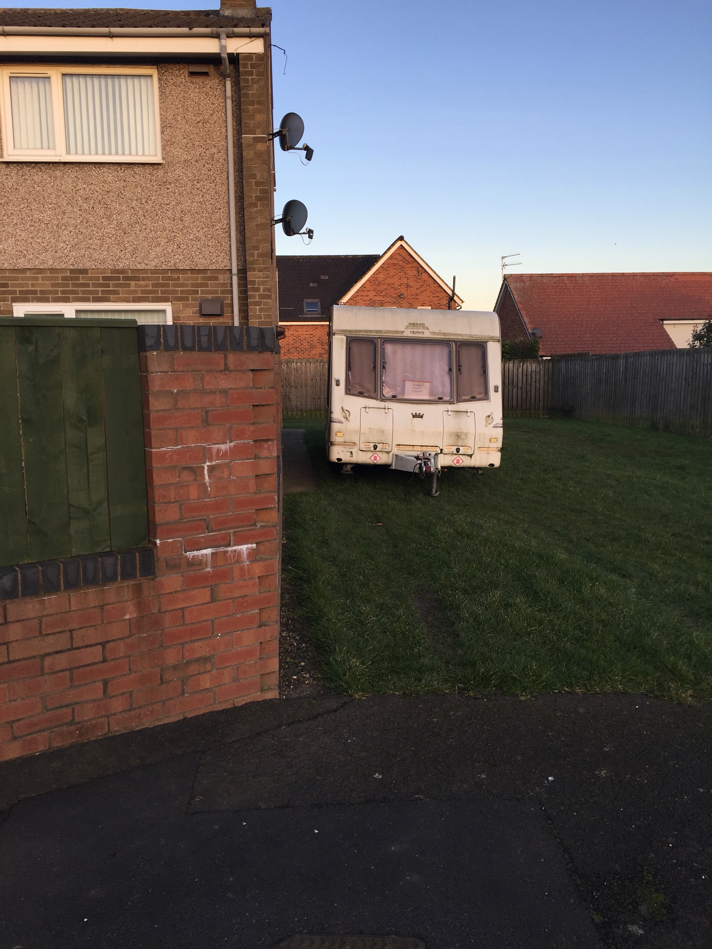 Asking all around the gaff, no one saw or heard much so I thought fuck it, let the police deal with this (if someone had genuinely owned it, it had NO place parked there! Thas MY gable end! This is when I realised Ashganistan police only work 9 to 5 Monday to Friday!!! REALLY!!! But the lovely woman on the 101 helpline took as much information as she could then asked what sort of car it was!!! This ineptitude got the better of me and I may have been a bit abrupt with her! I had already told her the fact it was a bloody CARAVAN.