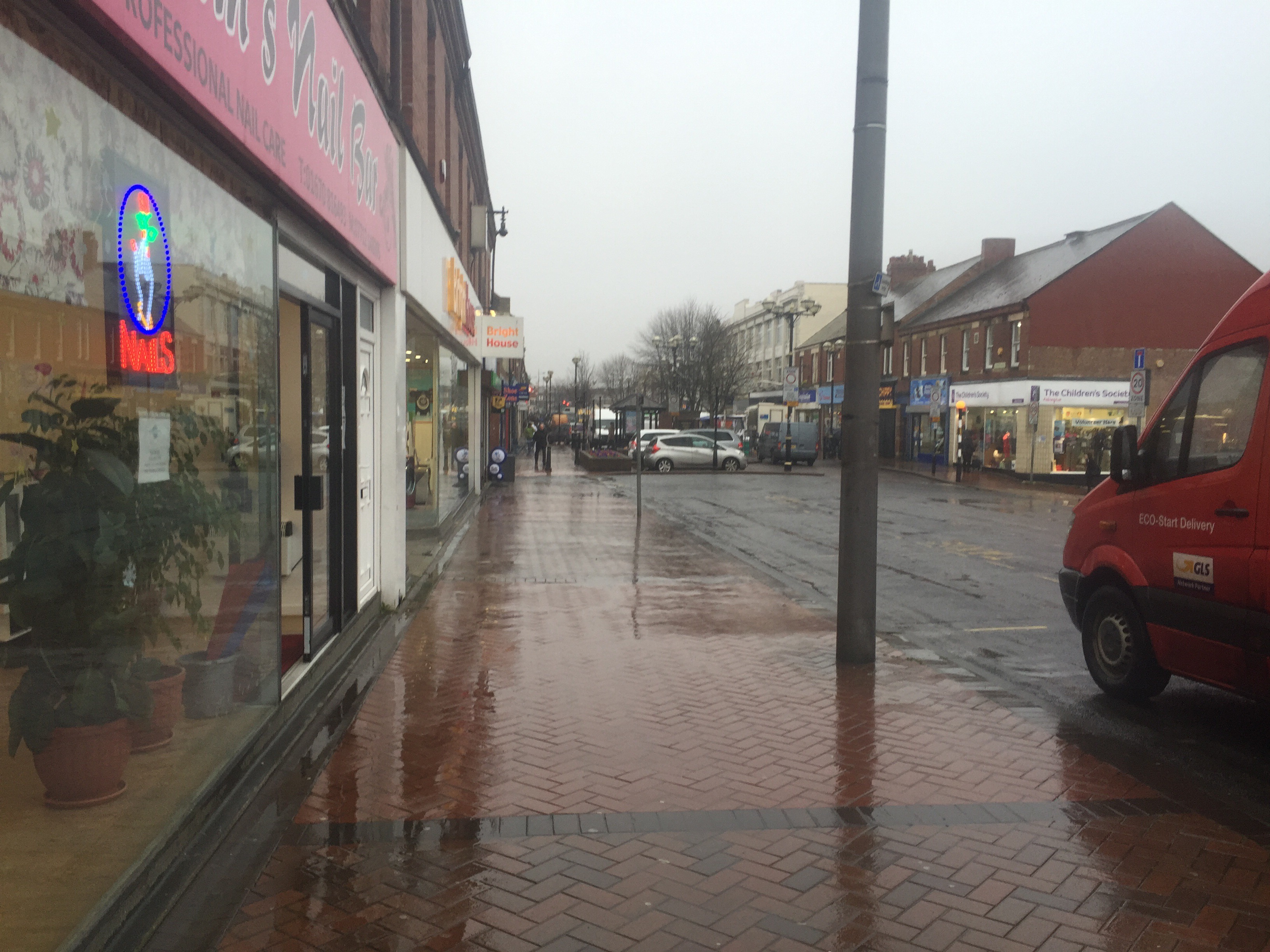 Taxis and busses and motorbike hoodies, trawl up the Main Street all looking for goodies, old folk and pushchairs and Barclays and lloyds, these are the things that I try to avoid!