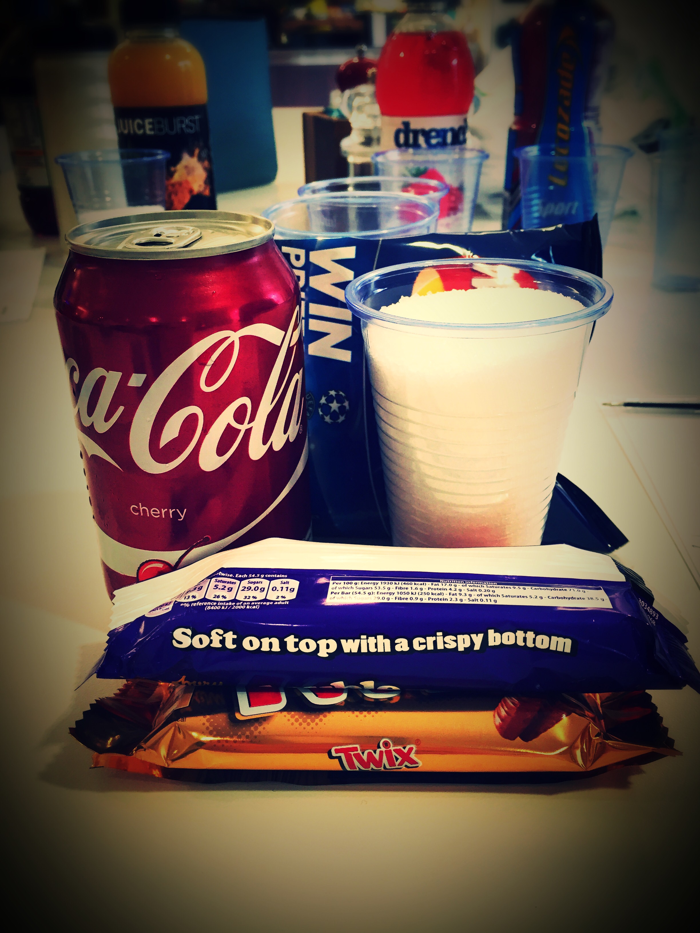 Now THIS bit frightened me. After a big old run (believe me, I used to) or a good amount of exercise, I could murder a choccy bar or two, and a drink (I’ll leave the crisps out for now as they don’t really add to the sugar content). Doing the old calculations again, we worked out that the beaker next to the can holds the equivalent amount of sugar contained in this ‘snack’, the only time I drink Coke now is when it’s partnered with a Jack Daniels, (and obviously JD cancels out ANY other calories, doesn’t it?) I’ve not had crisps for a long time and as for chocolate, well that only gets into my house on a special occasion these days (or I’ll eat the lot)