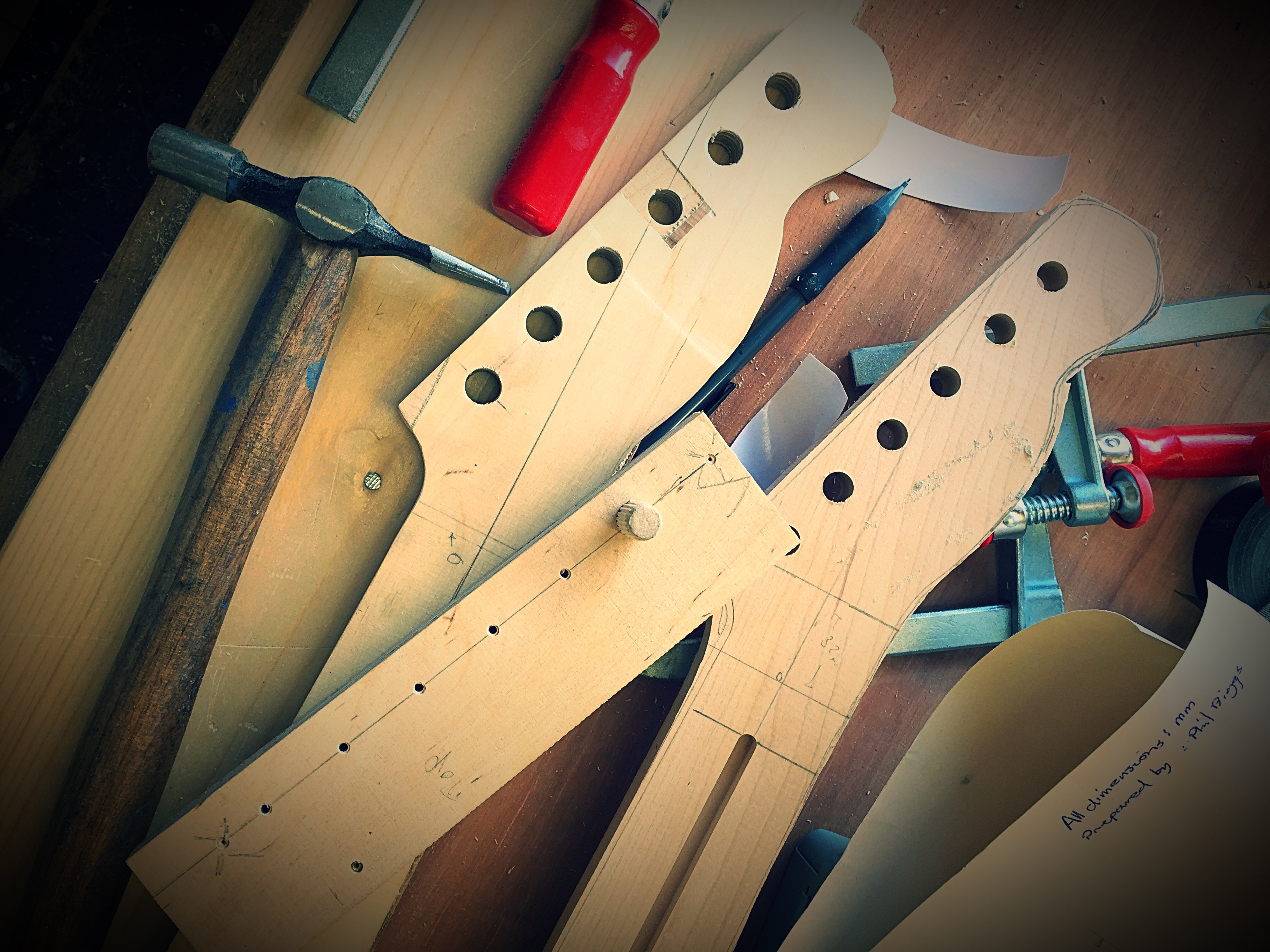 We mocked up one of the pieces just to see if it looked anything look a guitar, and I think you will agree, it does. Obviously loads more work to do on the headstock and stuff but as of now, you can see the smiles on the faces of the lads as they now have something that resembles something else (instead of a square piece of wood )