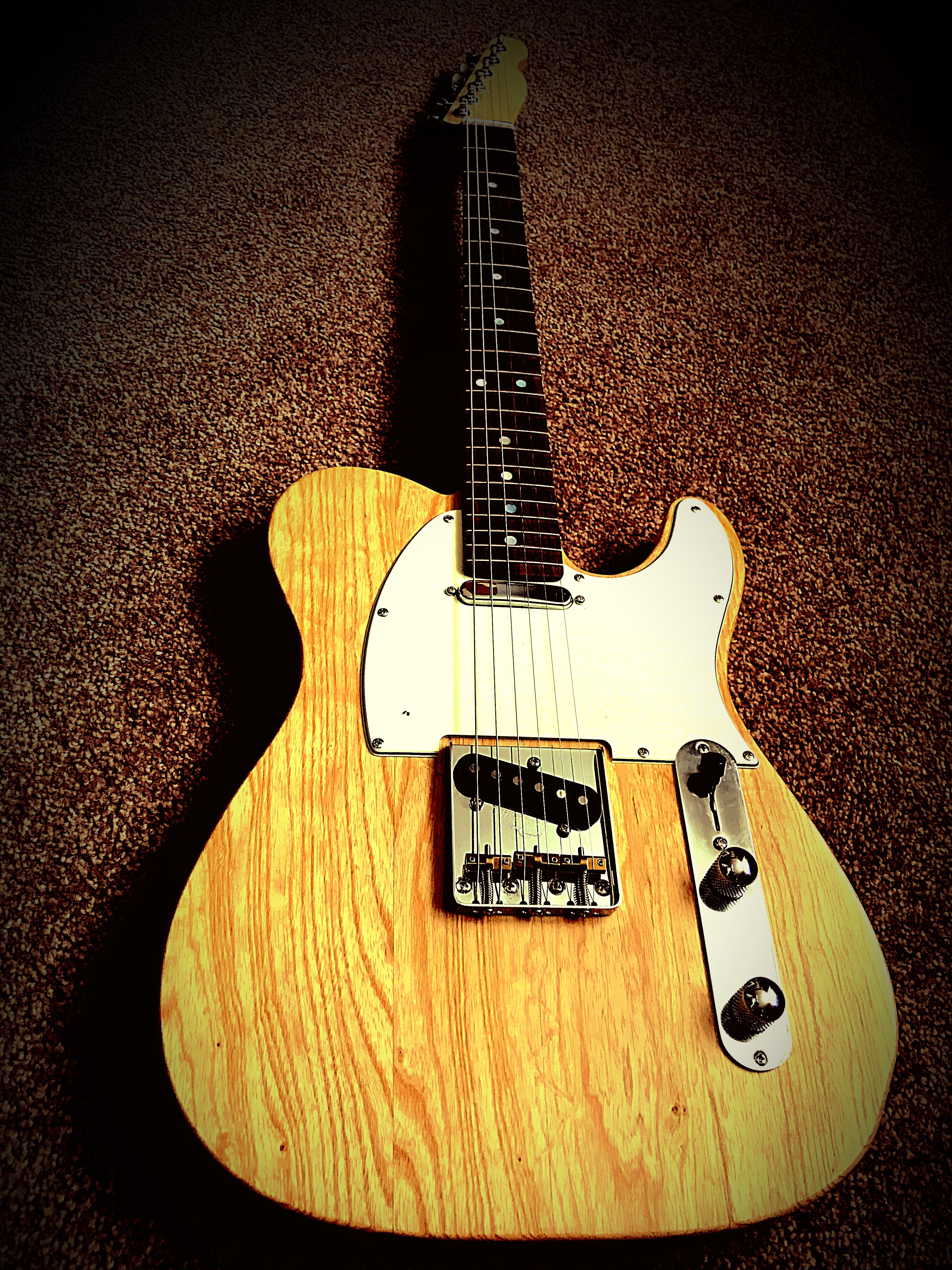 It’s done! She’s alive! She has ‘live’ running through her veins (well, strings) but the birth has finally happened. My gorgeous Telecaster that has taken nearly the length of time for the tree to grow from which it started off, but she’s worth it. I was at a loss of what to do today as my new central heating system was being installed so I thought I may as well give it a go!!