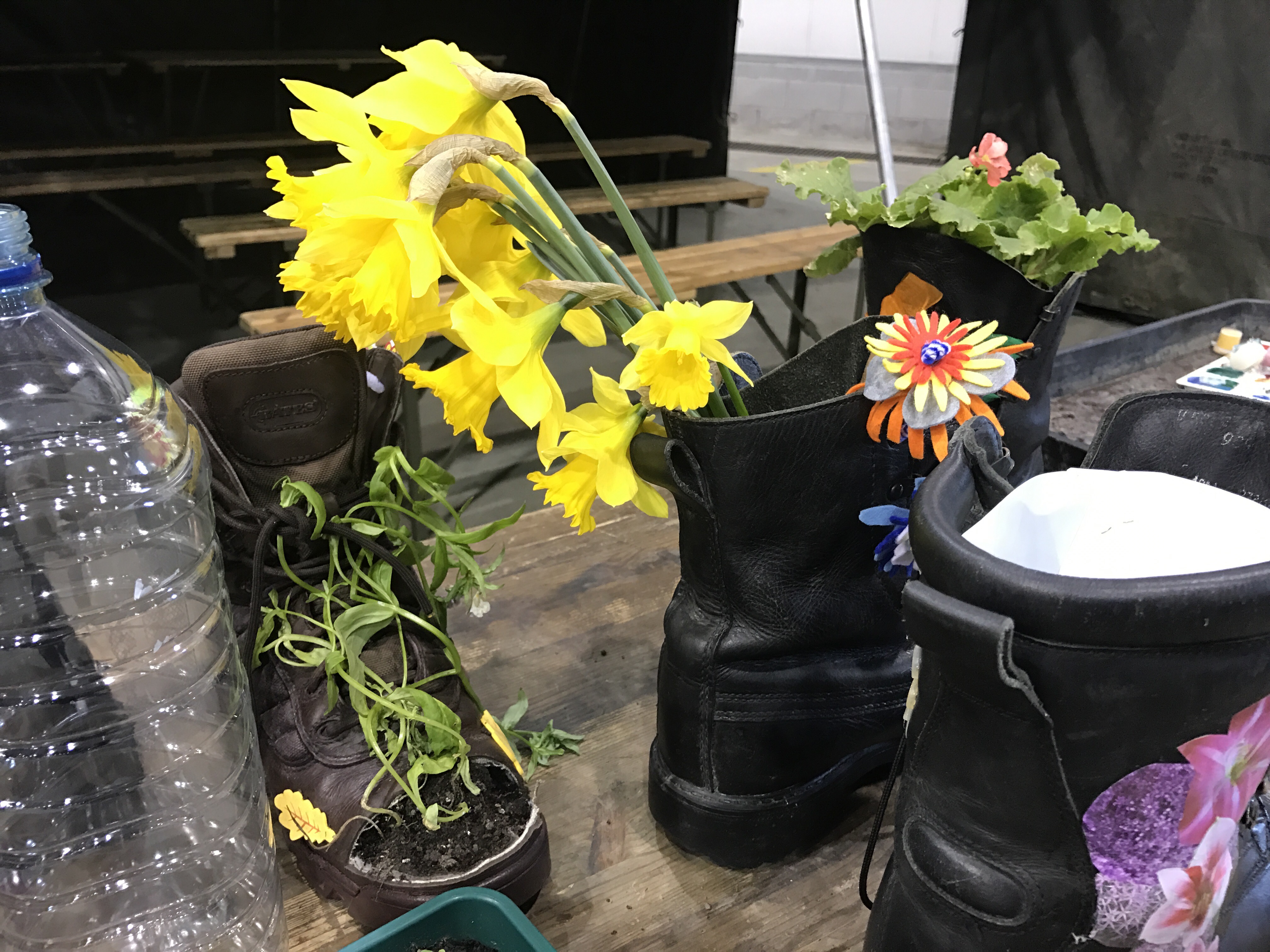 Flowers! Yeah, right (I’m using my pics to remind me) I was asked to a flower sorting thing last week, not like the old Hogwarts sorting hat, but a shindig where the army is looking at ways to raise awareness and money to allow a memorial garden to be made in Catterick! Apart from the plethora of kids taking old boots home to decorate and plant flowers inside, it was a strange sort of day for me. First I had no room at Catterick in which to ditch my shit, second, I was taken to dishforth, where the gaurs on the gate brought back memories that I wanted left buried in my psyche!!! I nearly freaked in the back of the car! But for decencies sake, I bit my lip and carried on.