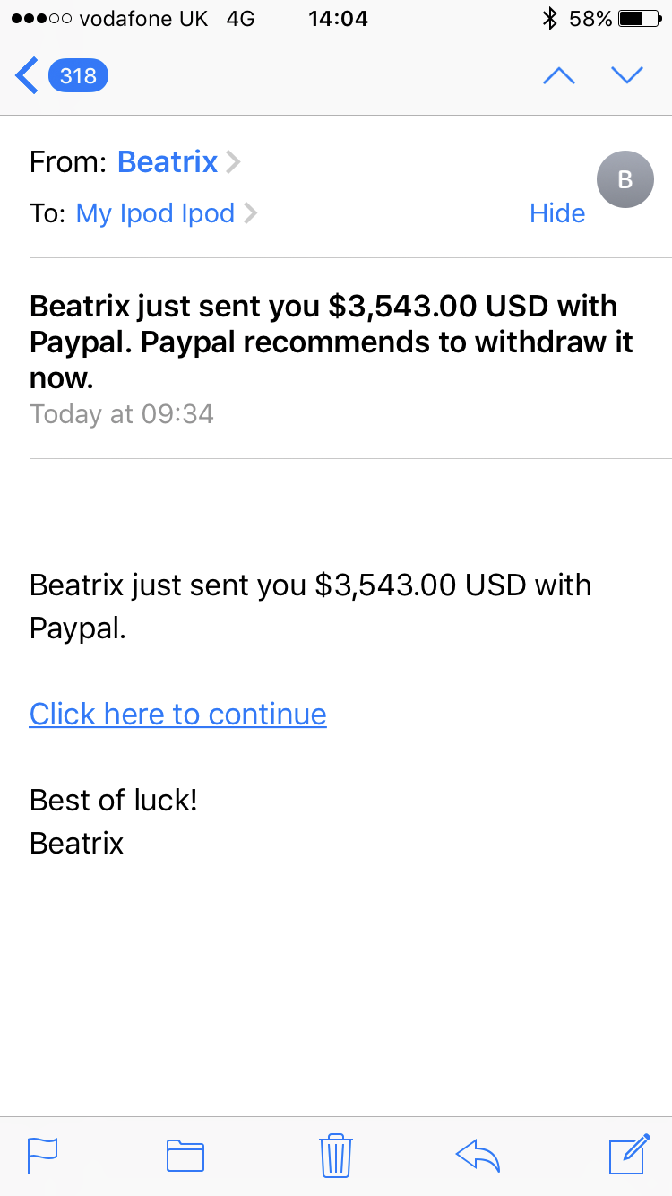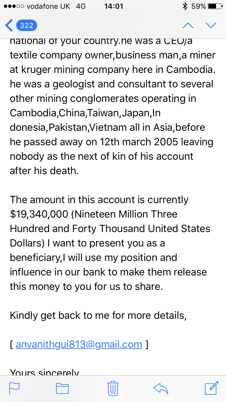 As I trawled through the crap on my phone during this festive time of the week, I came across loads of emails sent by unknowns from around the world! I seem to have some pretty influential, or at least rich as fuck contacts. They offer me money at every opportunity