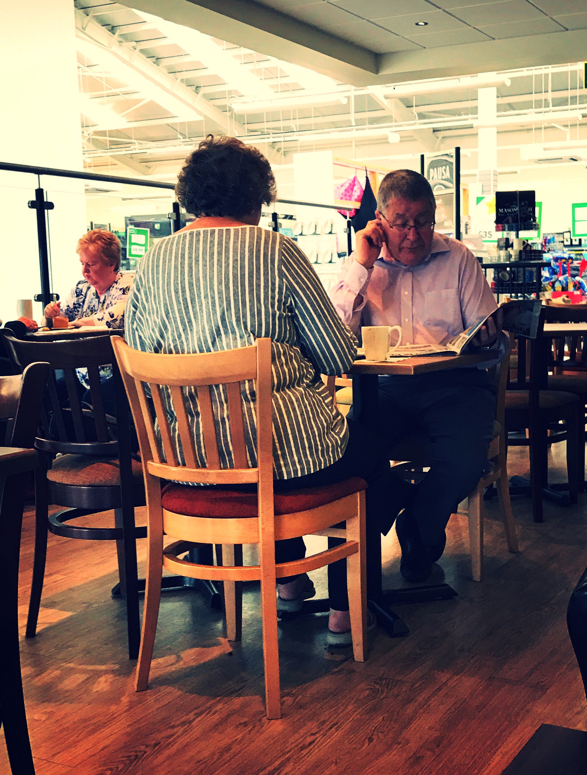 Everyday you see it don't you, the older couples (who seem to have been a miserable duo throughout their lives) walking along, no handholding, no speaking, no contact whatsoever, them they hit the cafe or food hall or wherever they find to eat. The old man goes find a seat and the old girl ends up standing in line looking at the menus (not actually reading them as this is evident when it's her turn) she will turn and look for her husband (who will be reading a paper) and ask what he wants. After a mild discussion (which could have been sorted before then) he decides either he doesn't want to stay there, or he just gets what he is given. Ultimately, the line elongates, the people behind get the right hump and the old girl gets confused but ends up carrying the tray filled with drinks and spilly stuff to the table where the guy looks up at his approaching sustenance, just sits there waiting! WTF????