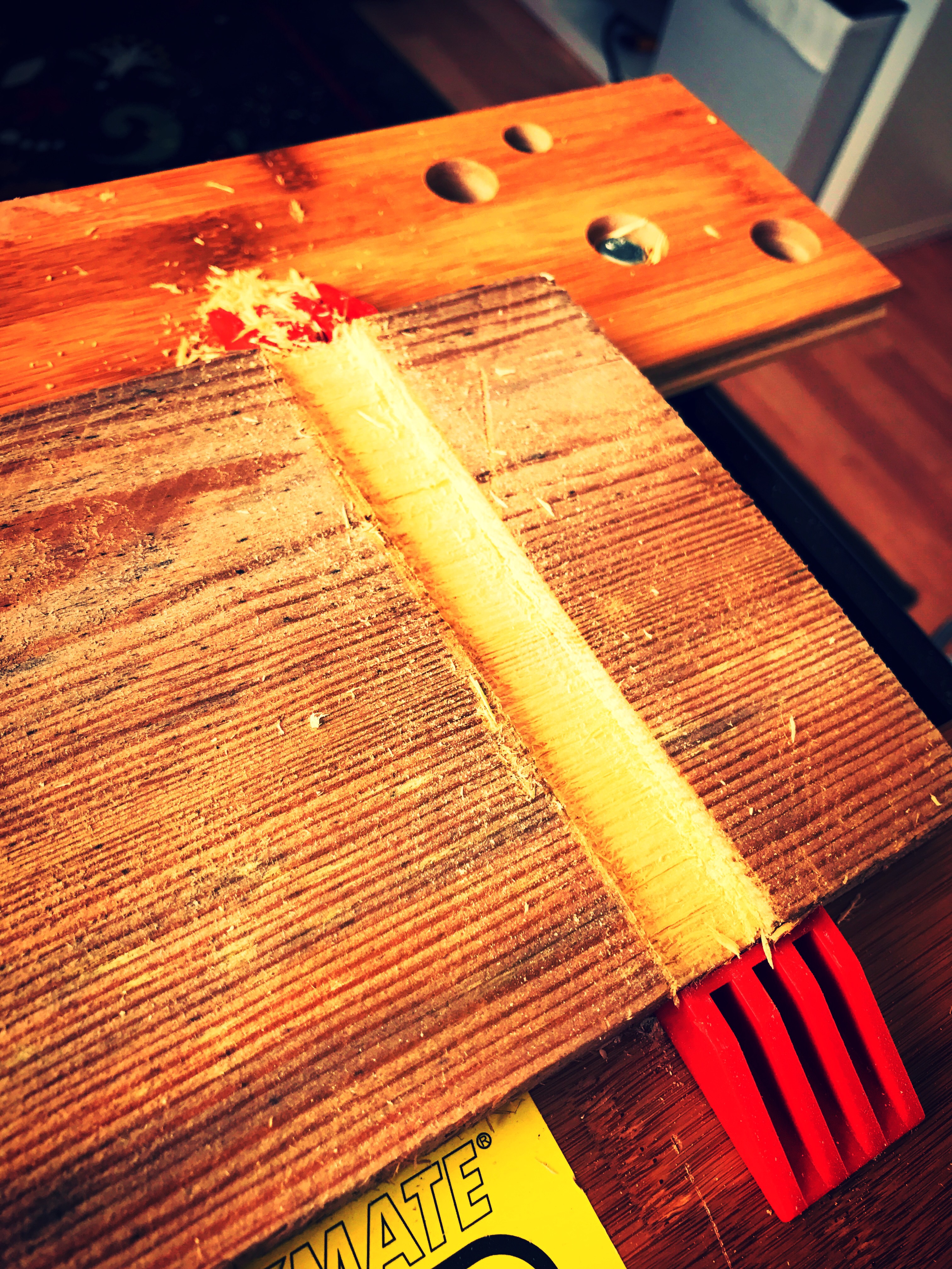 So to keep myself occupied, I decided to make use of my woodworking tools and new workbench. A luthiers inlay cutting jig is on the way (although I'm pretty sure I used to posses a full size saw which I can't find anymore) I'm using chisels and patience to make headway! I know I need to stop all production at a certain point in the evening, as my downstairs neighbours may complain about the workshop above their bedroom 😦