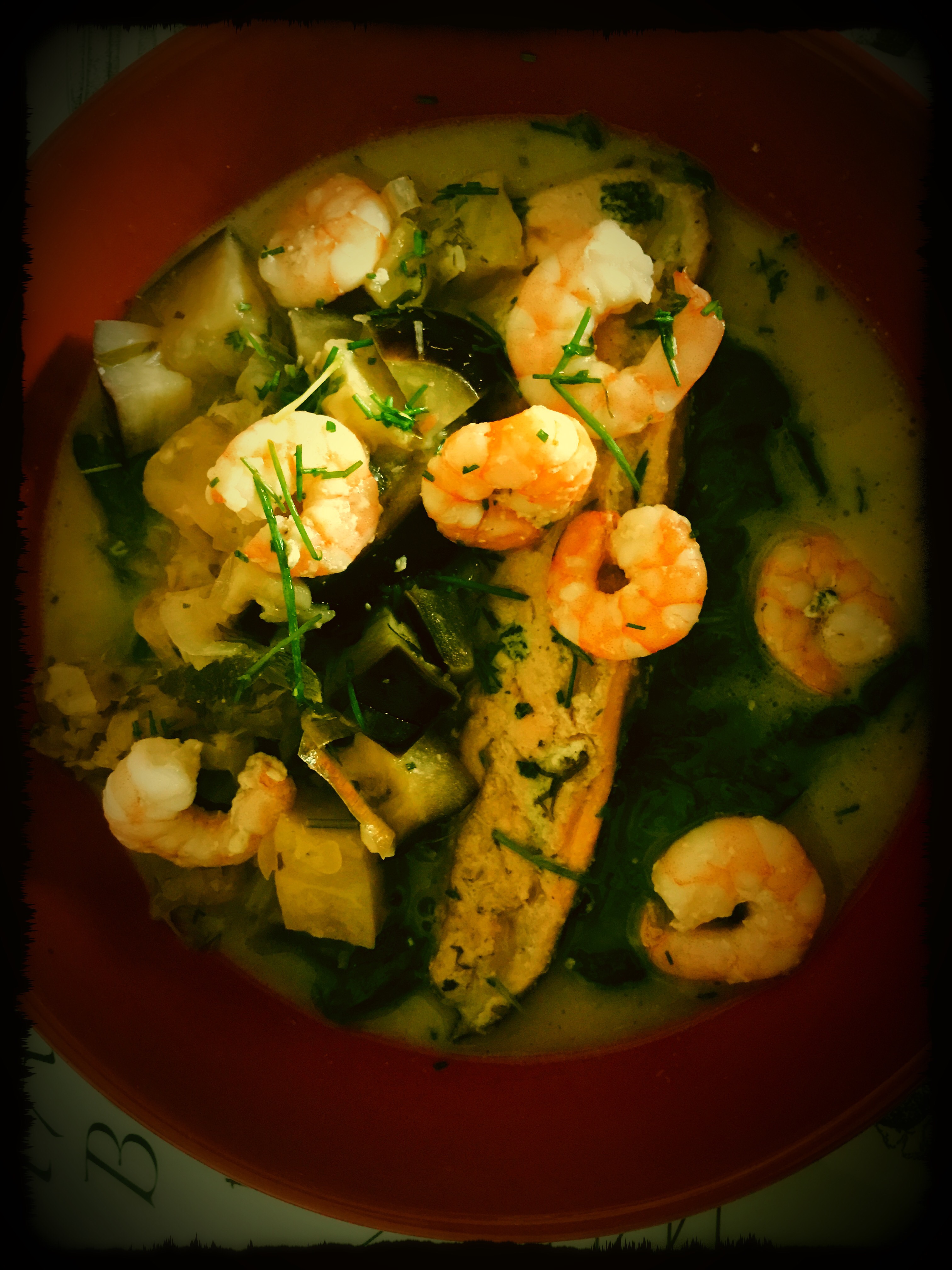 Not withstanding the obvious cock it in the measurements, I'm doing fine. The final product will be up and running to start making inlays in a couple of days :). But today I decided to let old Delia Smith out of the box and make an awesome curry, a fish and prawn curry made from a recipe I saw on the Saturday kitchen programme yesterday.