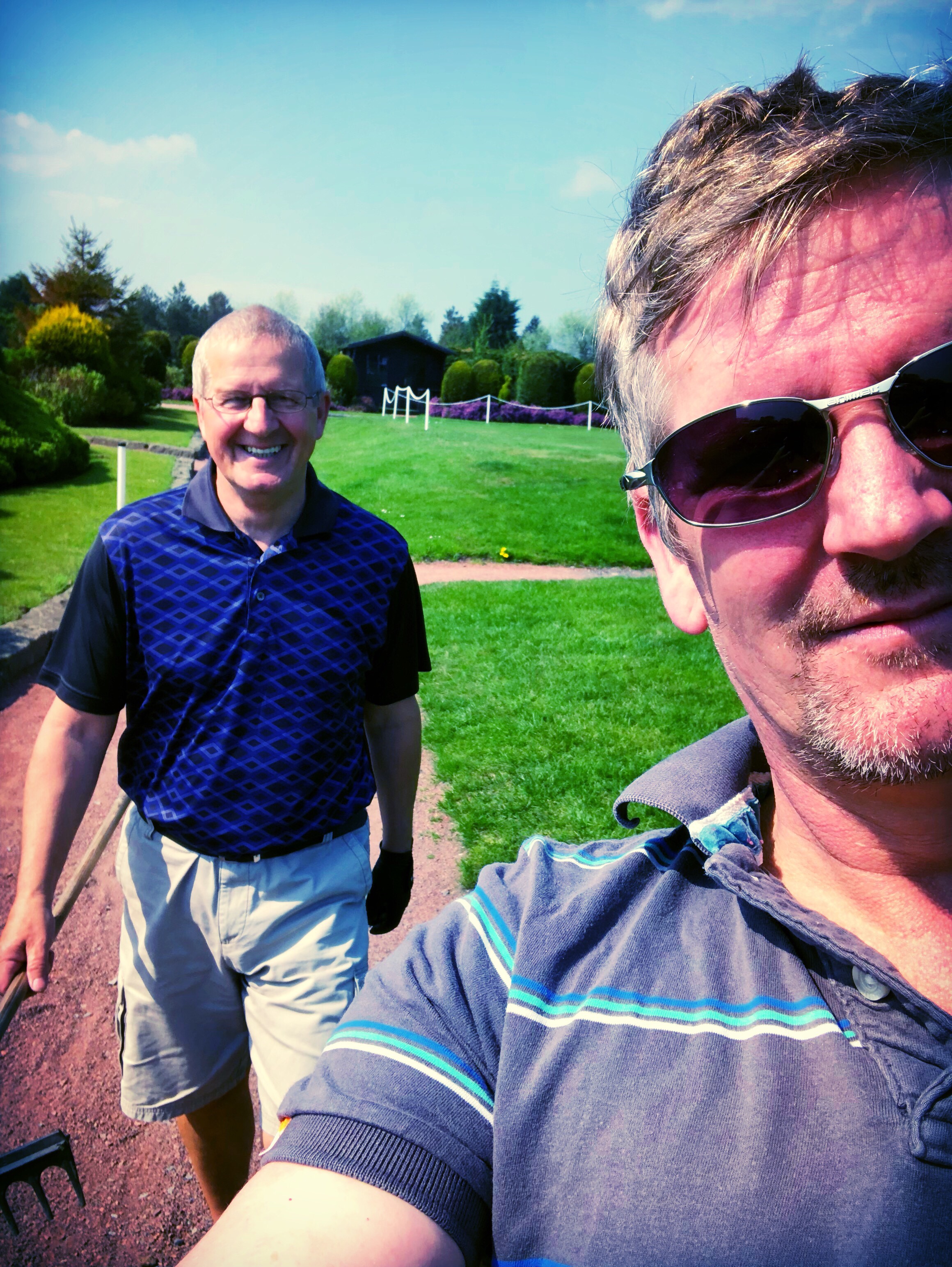 Golf on Monday, golf! Me! I haven’t played since leaving the army, but when I rescued me bats from my black hole of a cupboard, they were STILL covered in the last greens clarts.i don’t know if big brother was annoyed or despondent or disillusioned! Either Wray, I had a fantastic day out! Forgot me suncream, but that’s not a big surprise. Anyone who has watched me play, knows that a score card is only used as a map of the pitch, not for keep big score (the pencil is never big enough for all my hits)