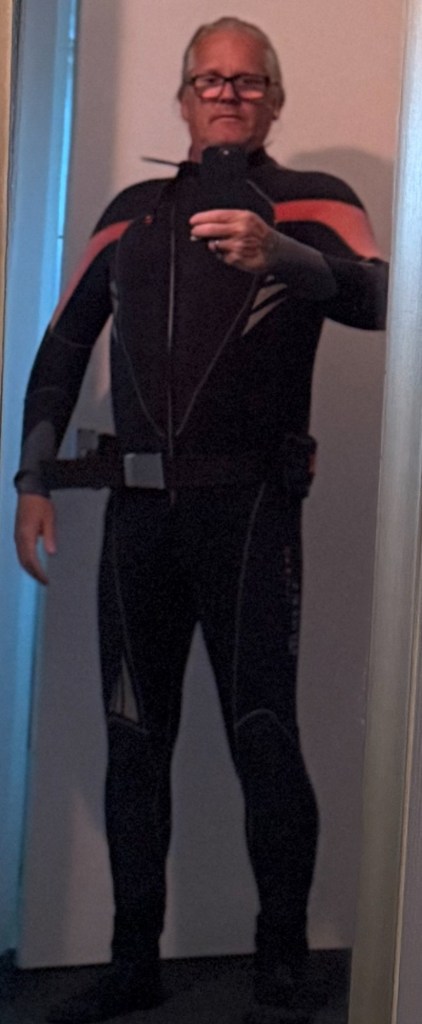 Well this could be interesting. I’m off for a dive later with my old stuff on. My wetsuit that hasn’t seen action in 12 years. Nor my BCD, nor me goggles and flippers. Plus I have no idea how much weight I will need (at least twice as much as usual I predict) However, with all these extra bites I’ve received, it could be less.